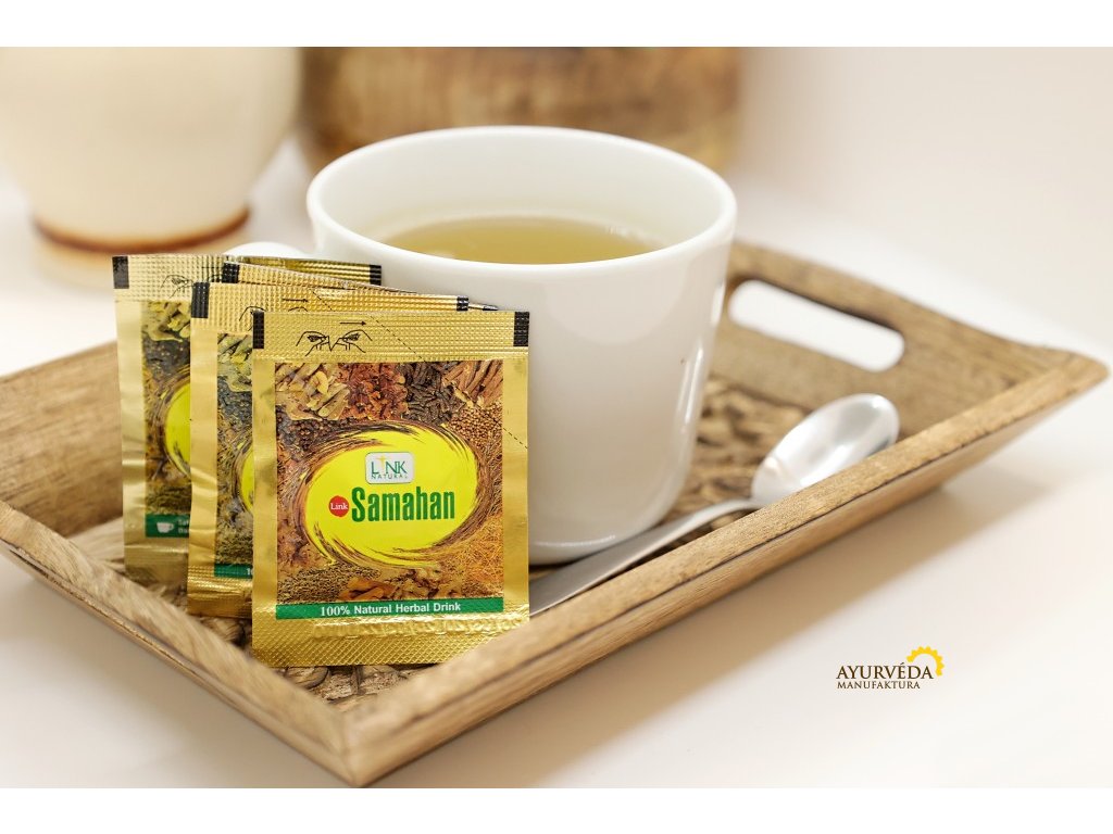 Lahodný ayurvédský čaj, který se skládá rovnou ze 14 druhů věhlasného koření. Doporučujeme pro nachlazení, obranyschopnost a vitalitu. Samahan je tradičním prostředkem na Srí Lance, v Indii a jeho popularita se rozšiřuje do celého světa. A to i pro mnohé další benefity, které k jeho popíjení patří - např. kořen zázvoru podporuje normální funkci dýchacího systému, vitalitu a potlačuje únavu a kořen lékořice podporuje imunitní systém a přirozenou obranyschopnost organismu.